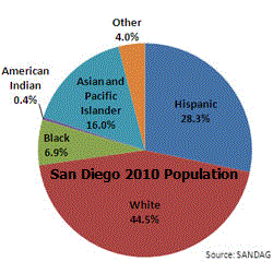 圣地亚哥是美国第七大城市,也是加州的第二大城市。人口: 138万左右,其中16% 亚裔。圣地亚哥有着极特殊的地理位置,南临墨西哥、北接洛杉矶,西临太平洋海岸。接近墨西哥边界上的圣地亚哥湾(San Diego Bay)在加州是极大的一个天然港湾,湾外的半岛从南北两边将港湾环抱,绵长的海岸线不但是人们休闲的好去处 。纬度和中国的云南相似。一年四季如春,冬夏长青。气候宜人。是一个非常美丽的海滨城市。